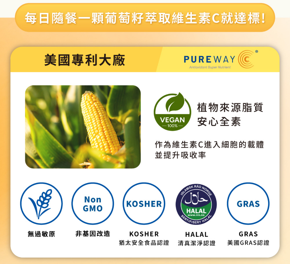 - 黃金配方 | 嚴選美國專利大廠復方維生素C + 葡萄籽萃取物,多元防禦