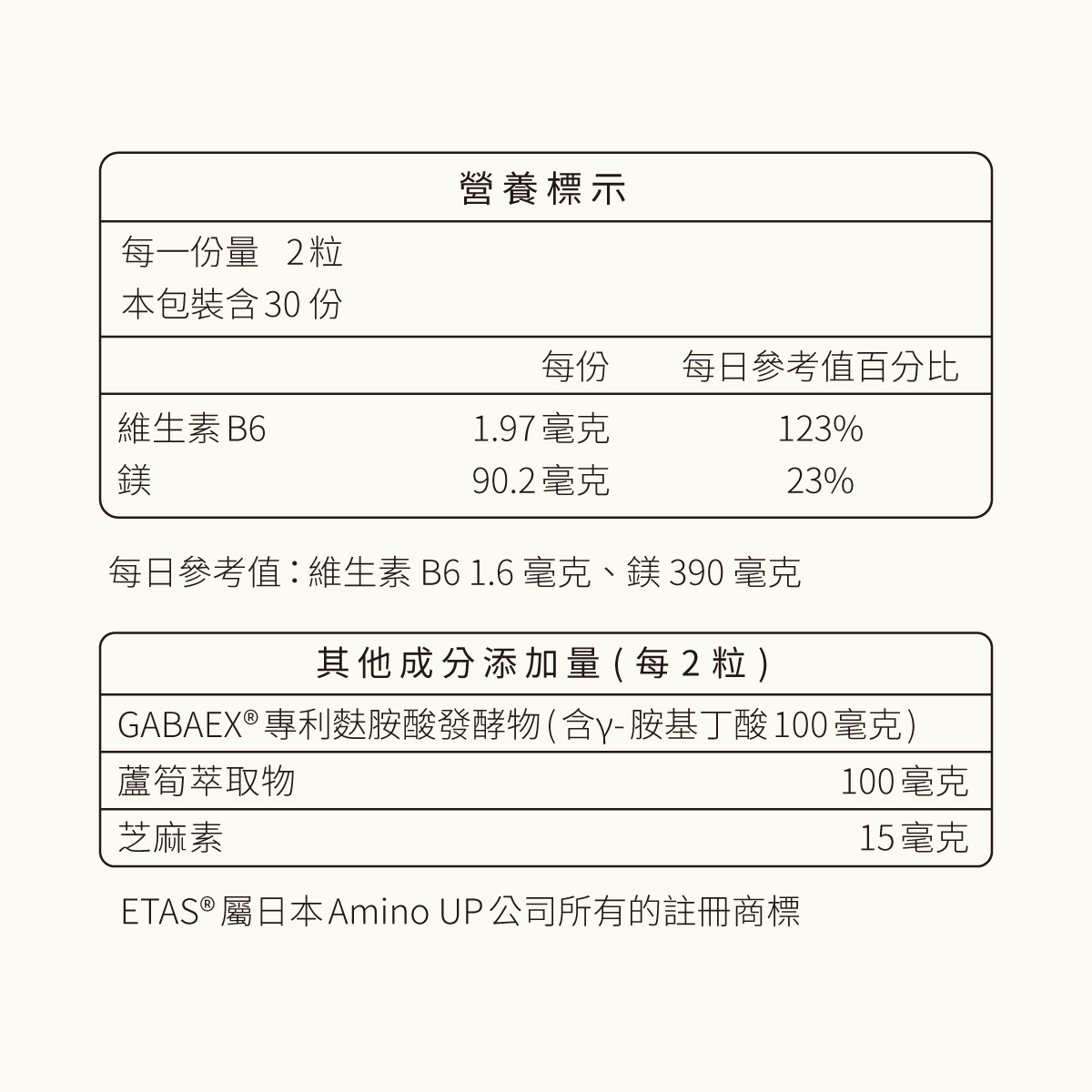 放鬆輔助|L-色胺酸、鎂、鈣、B6,調節生理機能,幫助入睡
