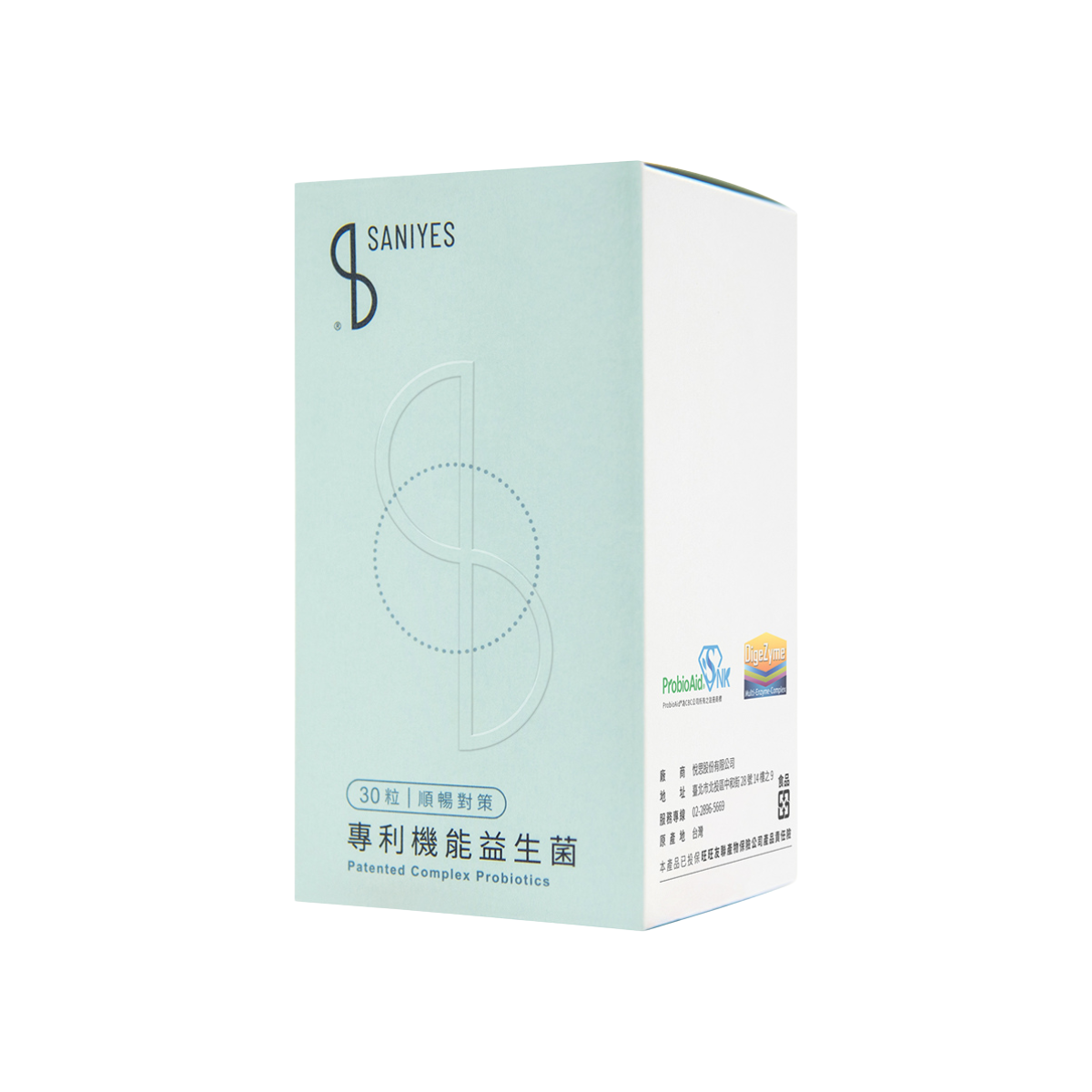 - SANIYES【順暢對策】專利機能益生菌,使用專利包埋技術,耐酸、耐鹼、耐熱,一般室溫保存也可以,但須留意存放溫度不要超過40度C。